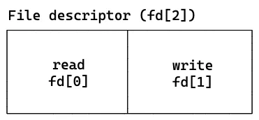 fd[0]์ ์ฝ๊ธฐ์ฉ, fd[1]์ ์ฐ๊ธฐ์ฉ์ด๋ค. ํ๋ก์ธ์ค์์ fd[0]์ ํตํด ๋ฐ์ดํฐ๋ฅผ ์ฝ์ ์ ์๊ณ fd[1]์ ํตํด ๋ฐ์ดํฐ๋ฅผ ์ธ ์ ์๋ค.