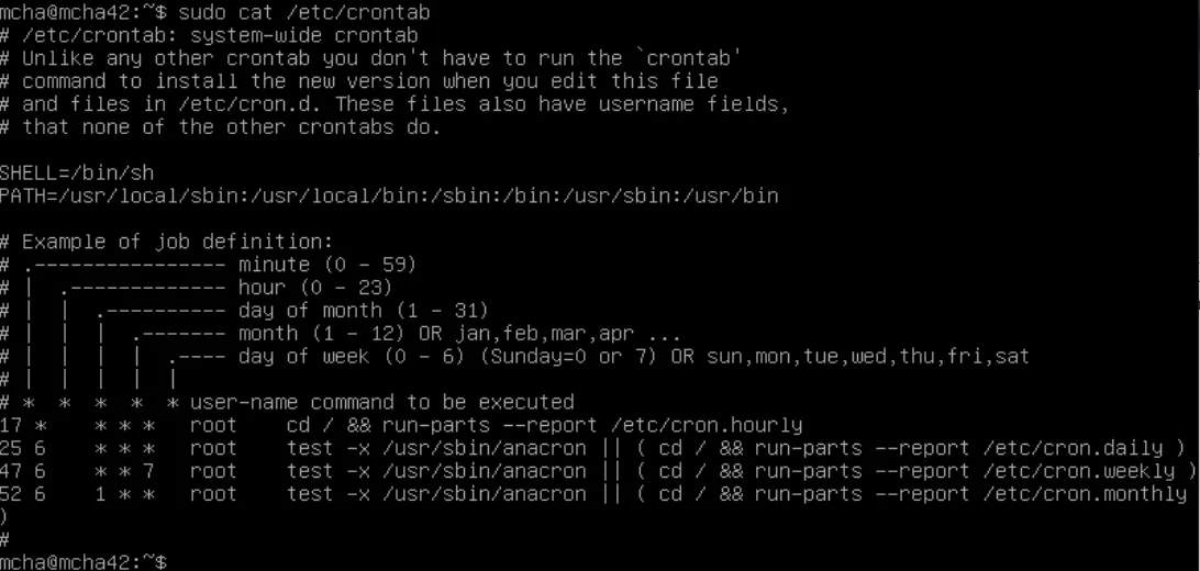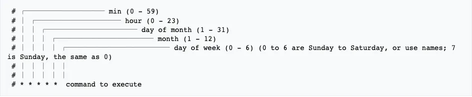 ์ฌ์ฉ์๋ฅผ ์ํ ๊ตฌ์ฑ ํ์ผ์ crontab -e ๋ฅผ ํธ์ถํ์ฌ ํธ์ง ํ ์ ์๋ค.