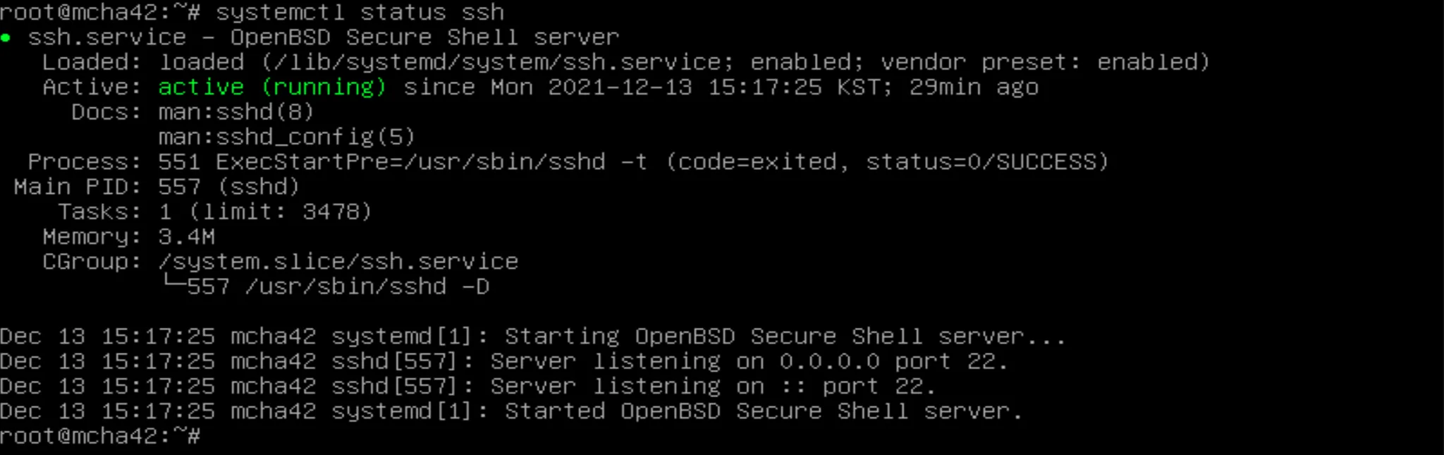$ systemctl status ssh