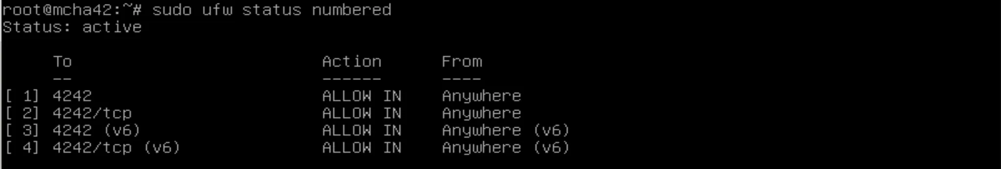 $ sudo ufw allow 4242/tcp