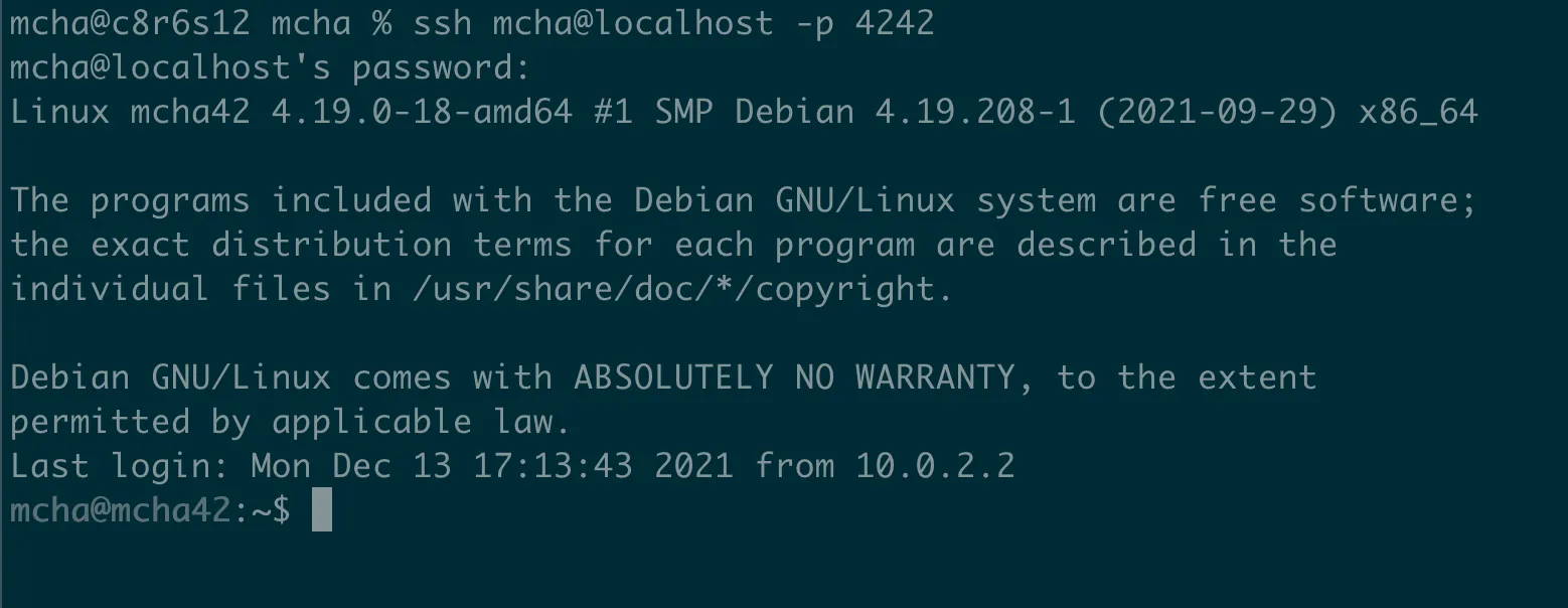 $ ssh <name>@<Host address> -p <port>