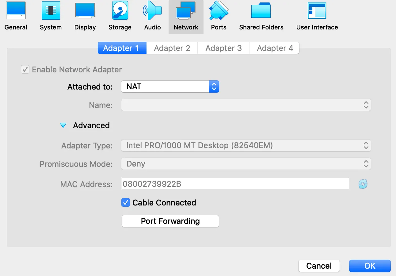 가상 머신 설정 [ Virtual Box → Settings → Network ]