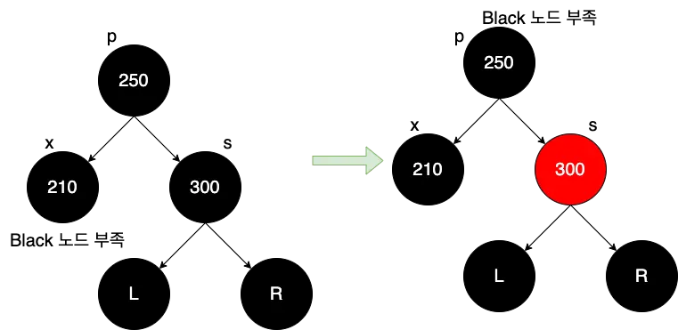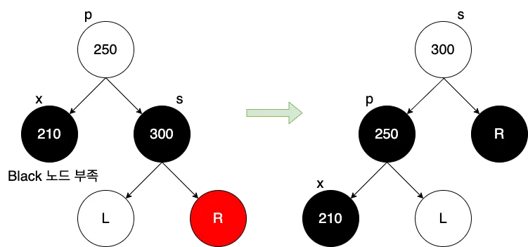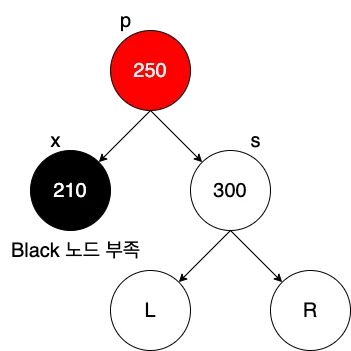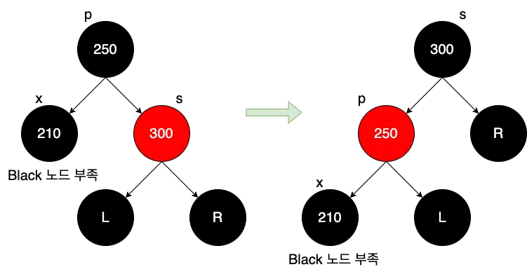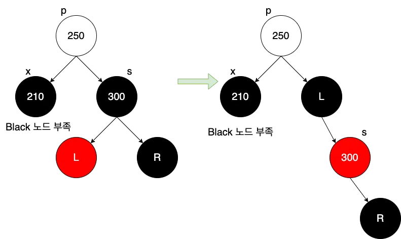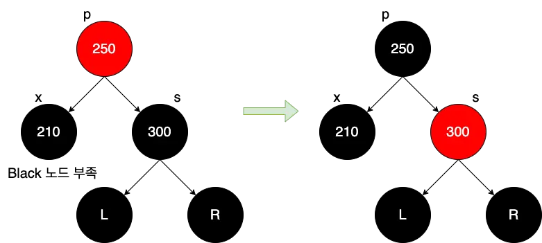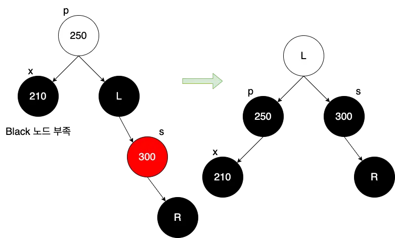 pλ₯Ό κΈ°μ€μΌλ‘ left-rotate β pμ Lμ μμ λ°κΏ β sμ μμ BlackμΌλ‘ λ³κ²½
