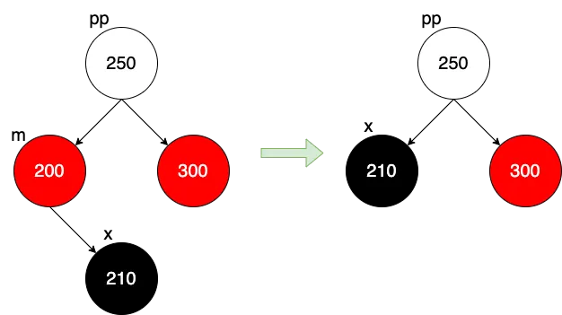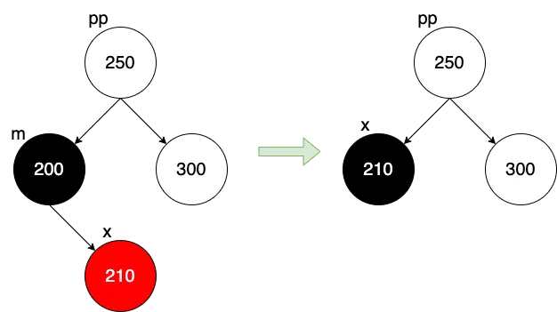 pλ₯Ό κΈ°μ€μΌλ‘ left-rotate β pμ sμ μμ λ°κΏ β Rμ μμ BlackμΌλ‘ λ³κ²½