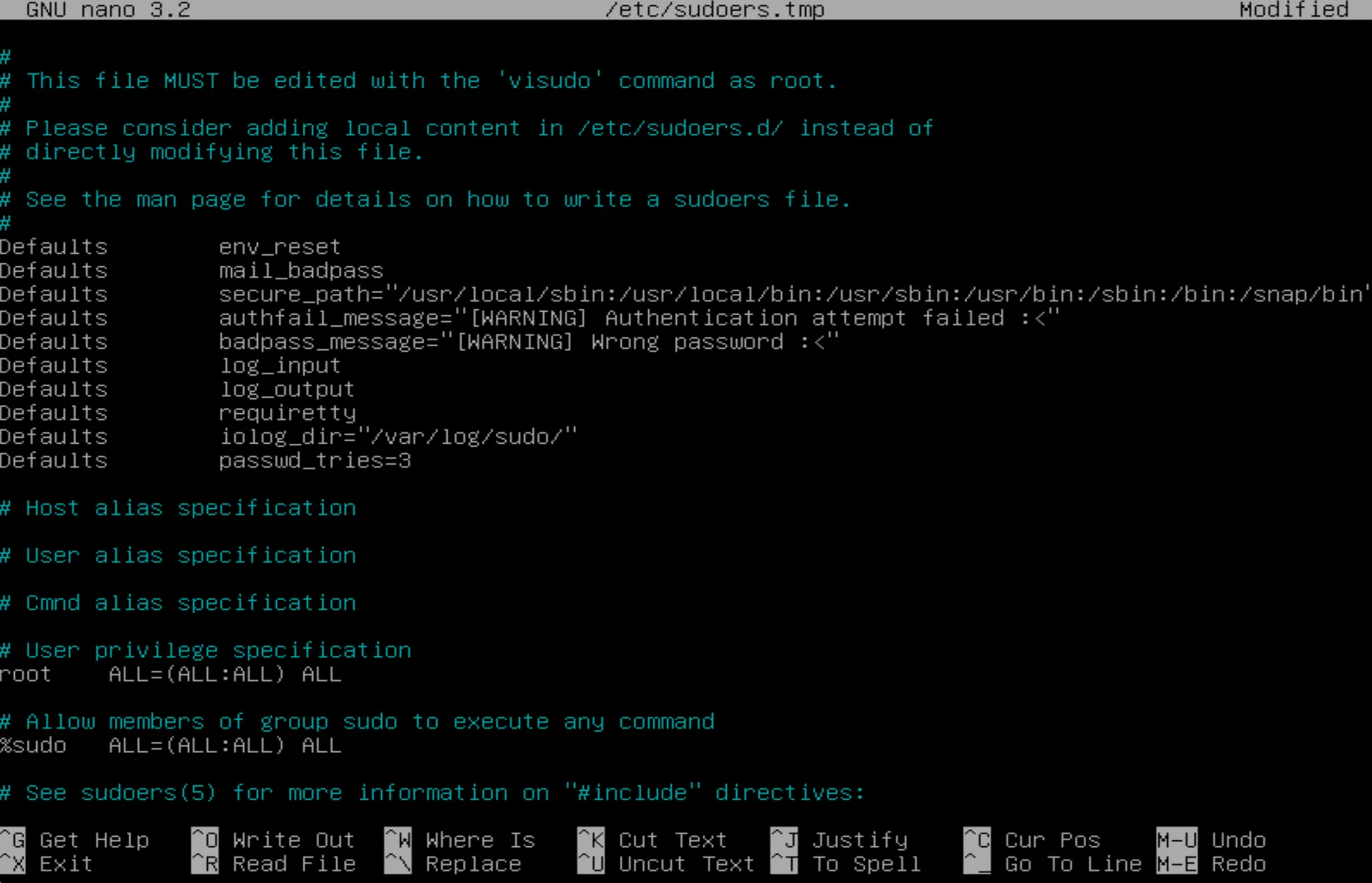 Defaults secure_path="/usr/local/sbin:/usr/local/bin:/usr/sbin:/usr/bin:/sbin:/bin:/snap/bin"