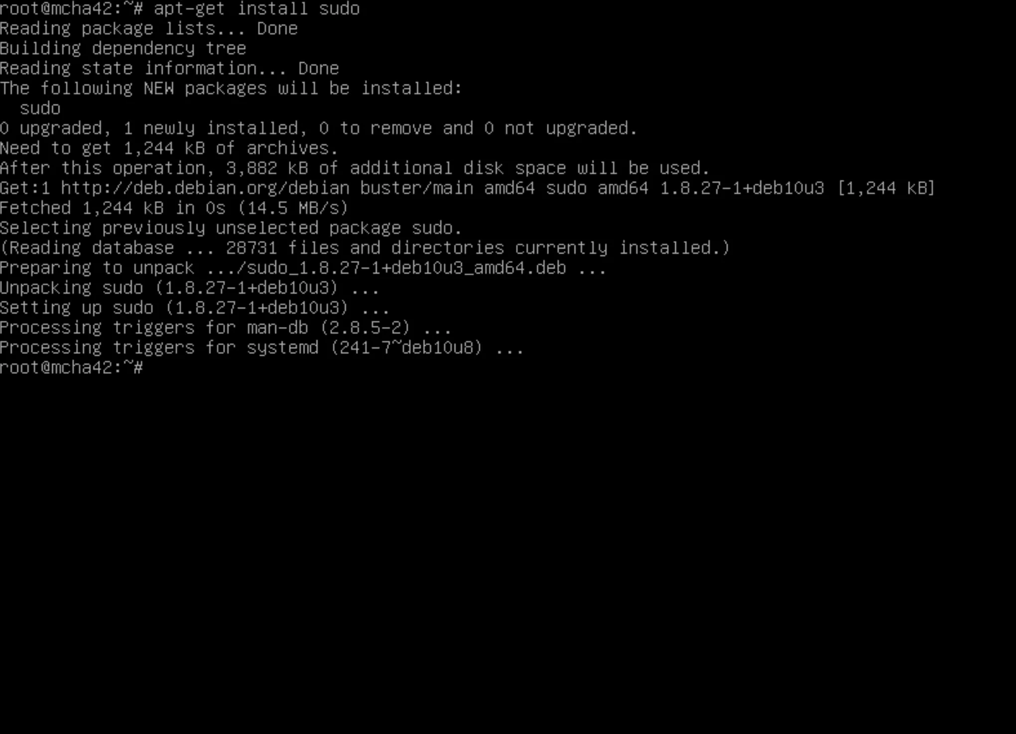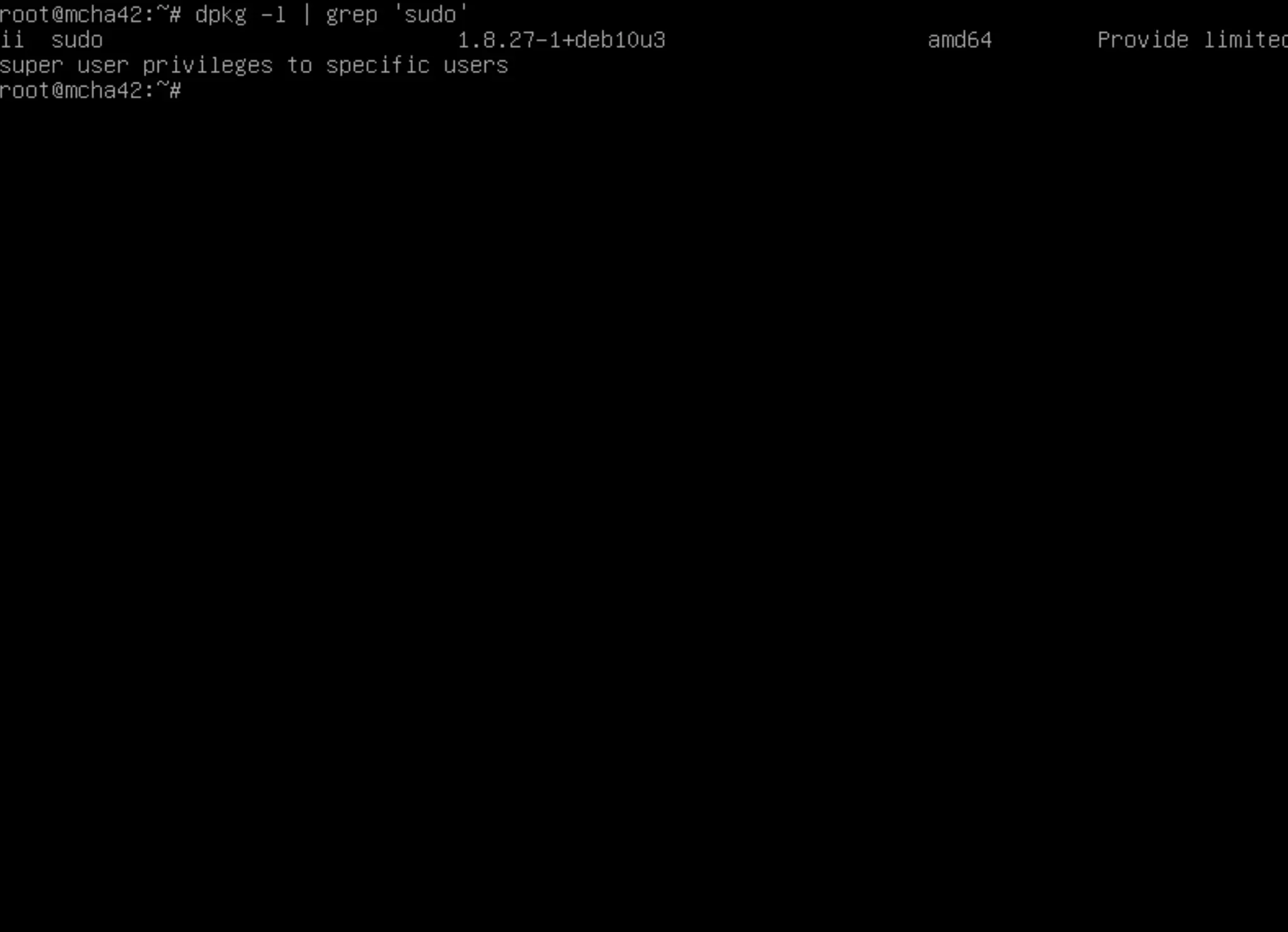 위의 명령어를 사용하여 sudo 패키지 설치 완료 여부 확인
