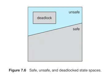 운영 체제는 교착 상태가 발생할 수 있는 상태를 검사하고 가능 성이 있는 경우를 Unsafe state, 가능성이 낮은 경우를 Safe state로 구분한다.