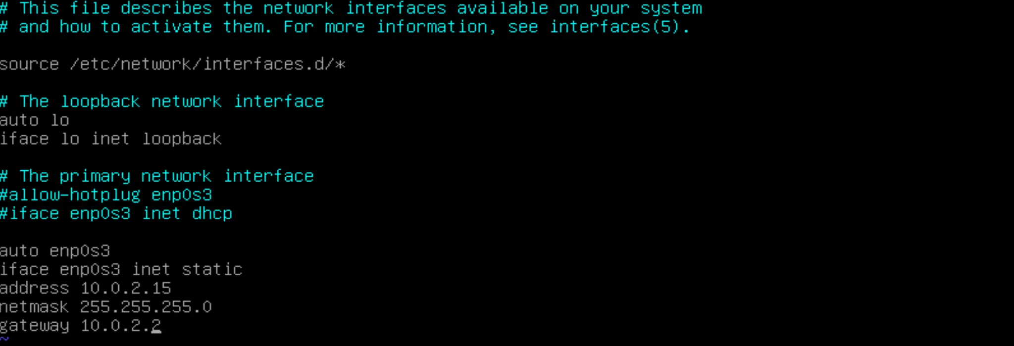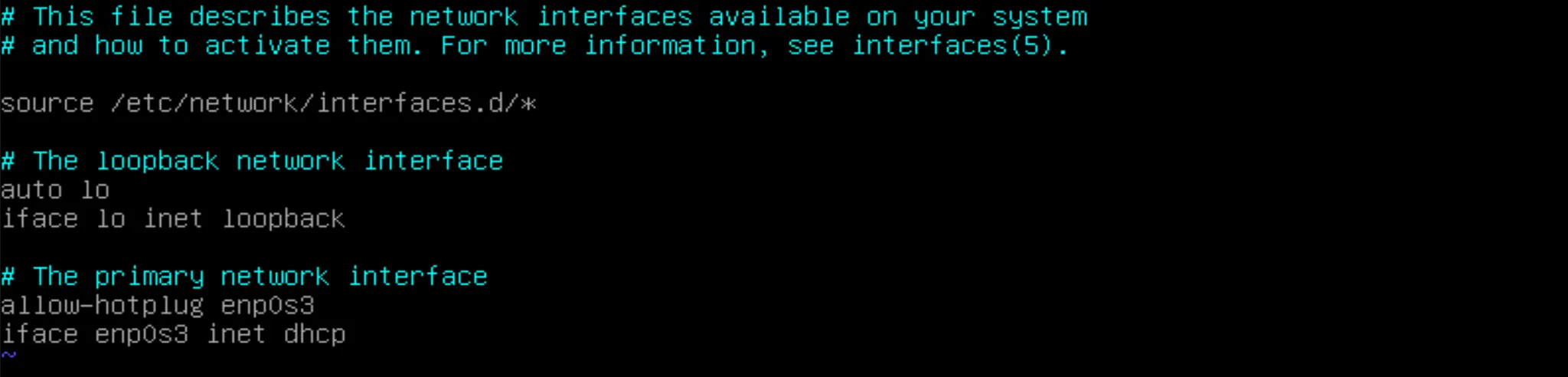 $ vim /etc/network/interfaces