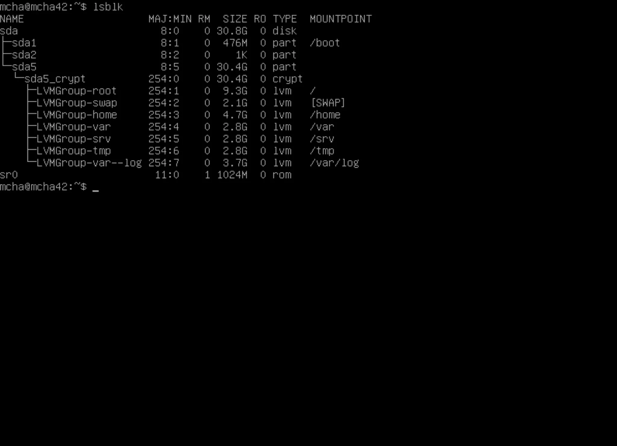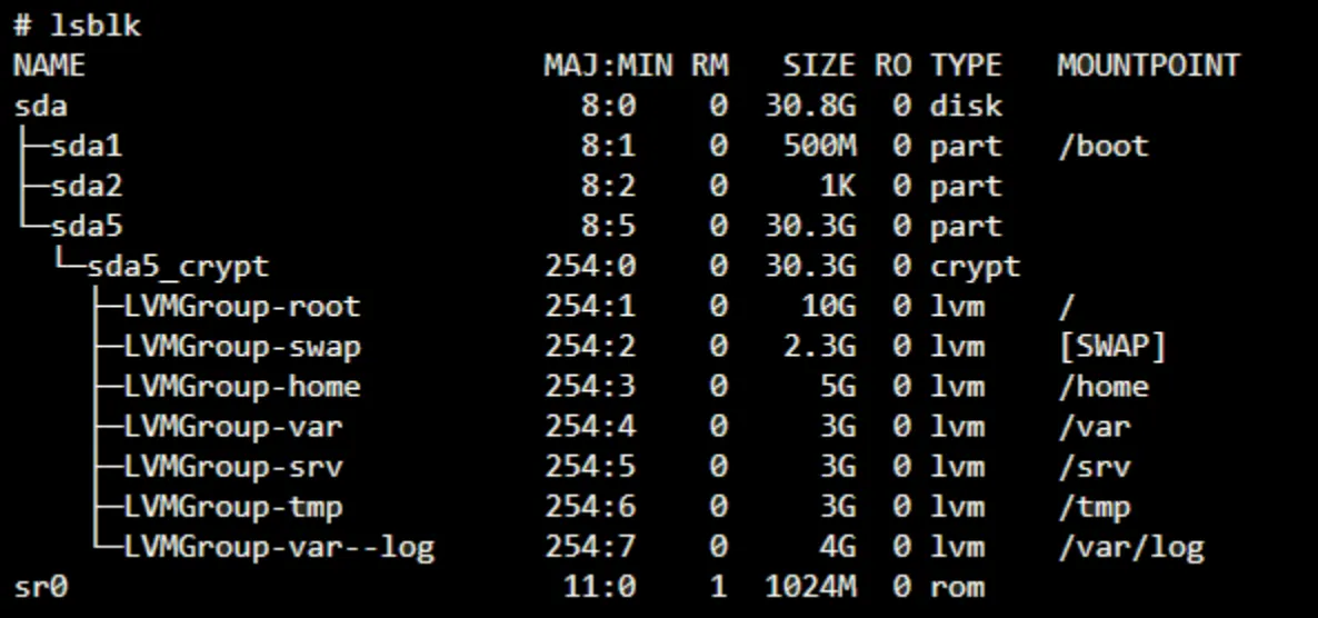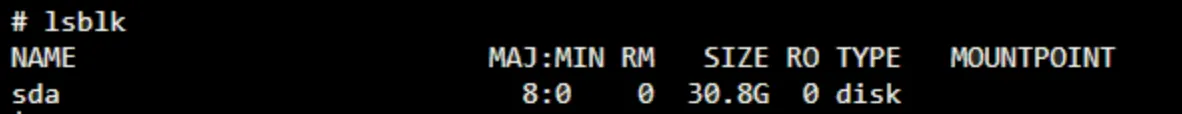 ๋ น ์ฌ์ฉ ์ sda์ SIZE๊ฐ 30.8G๋ก ์ค์ ๋์ด ์๋ค.