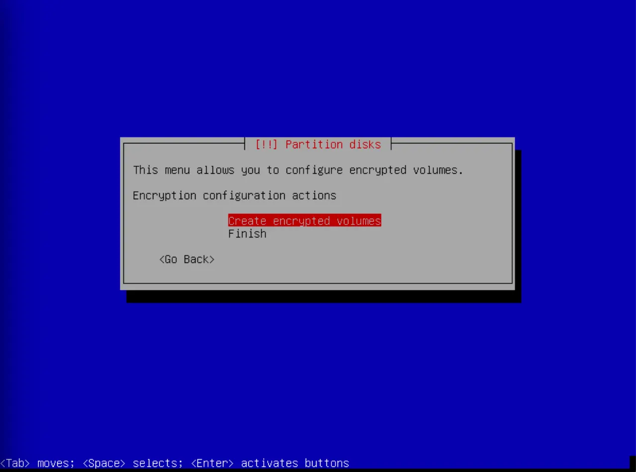 ์ํธํ๋ฅผ ์ํด Configure encrypted volumes ์ ํ