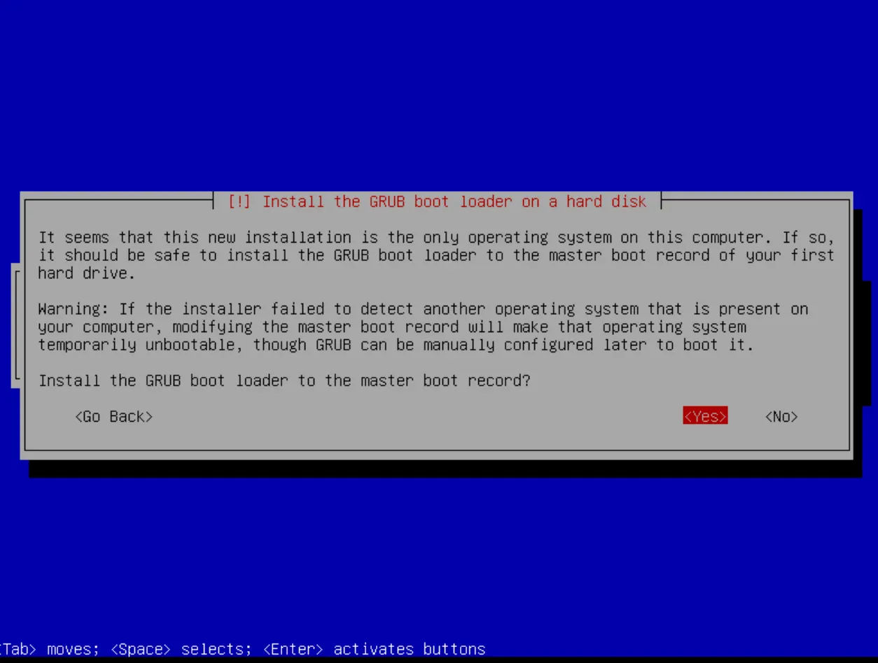 Boot loader(GRUB) ์ฌ์ฉ ์ค์ โ Yes ์ ํ